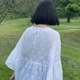 - 微微透肤的超轻薄棉料上面的白色点点还是立体的,细节满分的布料搭配飘逸的版型,在夏天穿起来舒适自在,非常适合怕热的人穿着,后领有暗扣穿脱方便。