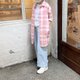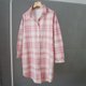 - 手感柔细的本白色棉布, 印上不同粉色的渐层格纹, 温暖又可爱的桃粉色, 衬肤色显得精神奕奕, 长版衫的形式舒适随性, 可以单穿也可以当作罩衫。