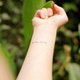 4. 将图案面朝下紧贴选定位置之皮肤上,贴上后请避免移动或重复定位。