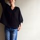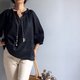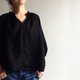 开放以新的黑色亚麻订做/迷幻黑森林/V领小开襟/七分袖/泡泡袖100%亚麻