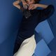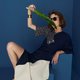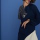 不對稱削肩喇叭袖連衣裙 | 藏青