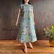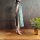 此款洋装采用A字廓形,领口设计为前身船型领、后身深V领。