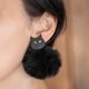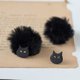 软陶制的黑猫,搭配可拆式毛球所组成的 2 WAY 耳环。