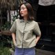 以顶级亚麻打造的女士衬衫,门襟处以天然染料织品点缀。