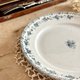 The white earthenware has a blue-green monochrome decor. All in sobriety, this decor is composed of two friezes of floral motifs, one of which is taken up in the center of the plate. The name of the model is the one of a French city.