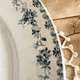 经典的大型古老法国餐盘,素雅的白色陶器,在盘缘与盘子中央装饰有蓝绿色花卉图案-理想的餐桌艺术品、更可实用于餐盘、蛋糕、三明治、开胃菜等。法国北部的城市St. Amand(圣阿芒) 制造。在盘子背面模型名称的工厂印标表明该盘子自1892年以来制造。