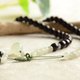 本商品经过严选,精挑天然小叶紫檀老型珠,精选老料,材质细密,油性足,润度高,手感油润。精挑天然A货糯冰种翡翠圆珠,剔除杂质珠和夹色珠,色泽均匀,水头足,微透明,透光性较强,超光泽水润,微透晴水色。犹如初春的天气般清明和暖。搭配天然翡翠隔珠以及天然岫玉莲蓬,精巧雅致,更有莲莲好运的寓意。手串接头处有上下滑动绳结,方便佩戴者戴脱手串,更有适当调节手串的作用。整体典雅清新,精巧雅致,知性优雅,清和内敛,自用送人皆宜。