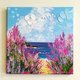 这幅艺术作品是一幅独一无二的色彩鲜艳的画作。我的画是用调色刀和画笔在画布上用压克力画出来的。