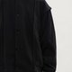 正面以切开式拼缝诠释 GAUZE 主题下的“覆盖裂口”概念,外推肩线自然延伸至袖部,形成由裂口向外扩展的立体结构。斜切口袋搭配横向袋唇与果实钮扣,强化视觉层次;袖部以不同方向的灯芯绒纹理延续裂口语汇,呈现细腻的立体动态。