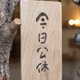 - “今日公休,期待您下次的光临。” 色质偏灰的橡木,雕上毛笔字, 一点古朴、一点和风, 好像走在老京都的巷弄里, 心情也跟着平静起来。 活泼多变的字体 让安静的墙与门口 多了一分亲切