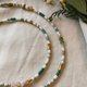 第一次尝试做长链想要制造比较轻盈、明亮的感觉,所以选择用日本珠、古董珠做为主体再搭配天然石及黄铜配件,目前的色调会以白灰水泥色为主唷!其他颜色会以点缀方式穿插