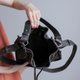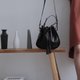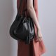 抽绳流苏 真皮手提肩背2用包侧背包 黑
