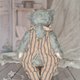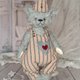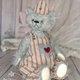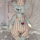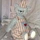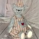 这只手工泰迪熊采用德国马海毛制作,填充物为雪松木屑与木丝,并以矿石颗粒增加重量。它运用传统泰迪熊制作工艺,搭配关节圆盘制作而成。这只熊配有灰色玻璃眼睛、刺绣鼻子,并以干粉彩进行上色。