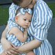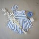 Way of love Collection This very famous stripe fabric is an essential item in your closet. romper is for a little girl of 6-12-month-old, with cute skirt and laces around the neck.