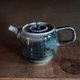 在高温柴烧的淬链下,釉药产生了剧烈且迷人的窑变。深邃的夜蓝色与极光般的翠绿相互交融、流动,表面浮现出如繁星般的银白结晶斑点。釉层厚薄变化之处,形成了自然的泪痕与层次,仿佛凝结了时间的流动。
