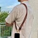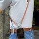 1.打开手机壳, 将T-PU挂片的D环穿过手机壳下方ˇ的动 (同充电孔相同) 再将手机放回手机壳, 挂上金属钩, 调整长度.
