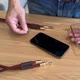 皮绳与皮革推片会相漆, 使用时左右转动即可松开.