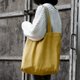 最初的灵感是旅行的时候用。因为这款亚麻虽柔软但是特别有韧性,感觉可以装很多东西,而把袋子对折可以塞到行李箱任何一个地方。