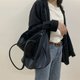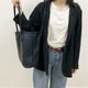 - 颜色是黑色有点蓝色反光的!可以放13寸笔电,A4文件。 属于中号的尺寸,适合放2套衣服,短途旅行也很适用哦~ 包包材质是独特的编织压花纹理,让简单的包包远看像一个手工编织的牛皮包一样。重工感棒棒哒! 皮料仅此一批哦,这款是限量出售。