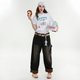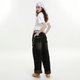 🫐 直筒长裤,腰部侧边有绑带设计。