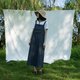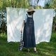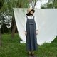 做了一款牛仔背带裙,正常腰线,微A裙摆,显得人高挑。
