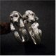 Real 990 Silver Fine Jewelry Women Vintage Vulcanized Silver Open Finger Rings Girls Lovely Dog Ring Red Crystal Bijoux