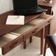 抽屉的内部是使用明亮桐木材来制作,能够完整地收纳所有的办公用品。抽屉把手是用和面板相同的材料来制作出充满风度的设计,整体来看的话和桌子融为一体,可以尽情地感受那高品质吧。