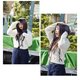Brushed plaid hooded hat XGH2419-格纹连帽头巾 帽子颜色:棕色 粉色 黑色 适用帽围:one size 材质: 100% 聚脂纤维 ⭐麻花绳造型飘带 ⭐绒布格纹 ⭐X金属幸运币 ⭐舒适内里布料