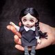 One of a kind customized doll, cute miniature Wednesday girl by Yumi Camui, just 6.2 inches in size.