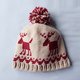 RedCheeks Wool Hat Cap | Yarn Hat | Reindeer Christmas - Red/Cream Brown Color