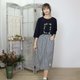 长裙腰部松紧带设计,穿着舒适便利,装饰排扣增加视觉层次,左右剪接口袋实用性满分,再加上套结装饰点缀,下摆帆布标增加亮点,款式清新休闲、十分百搭。