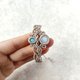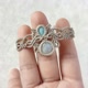 蓝彩光晕的月光石,海洋色调的拉利玛,搭配着曲线流畅的编织图腾,像是月光照耀下的海浪,宁静而舒缓。