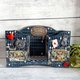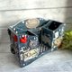 此收纳架采用木质材料,以蝶古巴特(Decoupage)工艺制作。收纳盒由立体元素和把手点缀。