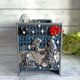 光泽与雾面的结合,在盒子侧面营造出极富触感的表面。丝绒般细致,触感温柔。银色与黄铜色。这一切都将让您爱不释手。盒子内随处可见各种立体地图,有大有小,还有其他小物件,如吉他拨片、小硬币、钮扣等。您将会很有兴趣地探索并找到这些令人怀念的小物件。
