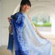纷飞围巾是运用花满花的布局,加上美丽的渐层由浅蓝到深蓝,让整条围巾拥有丰富的变化,让使用的人拥有春天的浪漫,在走动中围巾飘动尤如身处樱花纷飞的樱花林中.