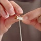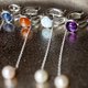 当配戴在右耳时,连接珍珠链的圆形金属环会垂在下方;