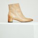 踝靴鞋头采用品质精良的意大利小牛皮一片式制成。
