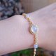 - 贵人•高贵|梦幻芭比紫|缅甸A货翡翠高冰白翡紫蛋面s925纯银镀18k金精致多颗手链,可调,附证书(实力无封底) 高冰玻白翡放光蛋面裸石尺寸:10×7×2.3mm 芭比粉紫蛋面石尺寸:6×2.7mm(取其一) 手链长:13.5+5.5cm