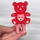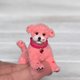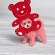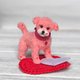 配件方面,我为他做了一个深红色的皮项圈,上面装饰了一个吊坠,还编织了一张红色的心形床、一个白色的心形枕头和一只可以放在狗脸上的红色小熊。
