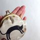 表布 米底黑猫图样、里布 珞黄、口金 雾金、绒绳 芥末黄。