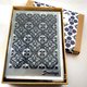 本品每盒含感光液材料罐、148x105mm独家花砖负片2款、148x105mm明信片10张、165x115x2mm透明压克力板2片以及其他必备工具组,带您轻松创作花砖蓝晒明信片。