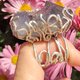 萤石原矿重33公克,长4厘米,宽2.7厘米,厚2.3厘米,纯银手工制作,国际戒围为16号(美国戒围9.5号),欢迎试戴。