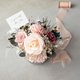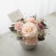 使用朵粉菊色系裸粉永生花,来自日本大地农场有机永生不凋玫瑰/不凋绣球,采用食用级染料配上裸粉渐层色系绣球及设计款雾银花器,好好照顾可以观赏3年以上喔~若需做成捧花请来信定制报价喔~