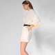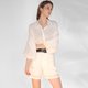 精致水钻延边装饰,衬衫不对称下摆设计搭配法式泡袖,面料凉感舒适具有垂坠度,正式中带有些微休闲感。