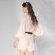 - 精致水钻延边装饰,衬衫不对称下摆设计搭配法式泡袖,面料凉感舒适具有垂坠度,正式中带有些微休闲感。