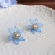 可愛小清新浪漫氣質優雅簡約夢幻真絲紗﹣藍紫色手繪暈染水晶水鑽花朵花花耳環交換禮物生日禮物