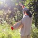 主身是双层亚麻网纱面料,浅驼色。