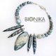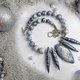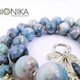 Laconic, stylish necklace beads from polymer clay in sophisticated silver, white, blue colours.
