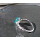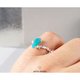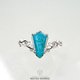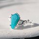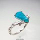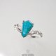 将澄澈蓝色的蓝铜矿玉髓 / 硅化蓝铜矿,镶嵌于纤细的唐草戒指上。