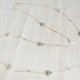 这款项链点缀着可爱的蓝白三叶草珍珠, 并以拉长石点缀其中,增添一抹静谧的雅致。 非常适合即将到来的季节。 长度约99厘米。
